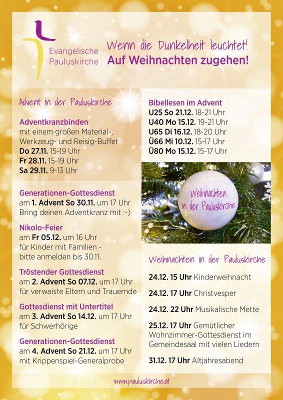 Advent und Weihnachten in der Pauluskirche Wenn die Dunkelheit leuchtet!30. Nov 2025 von pauluskirche Weitere Artikel ‹ Der Nikolaus kommt! Das Kinder- und Familienprogramm ›